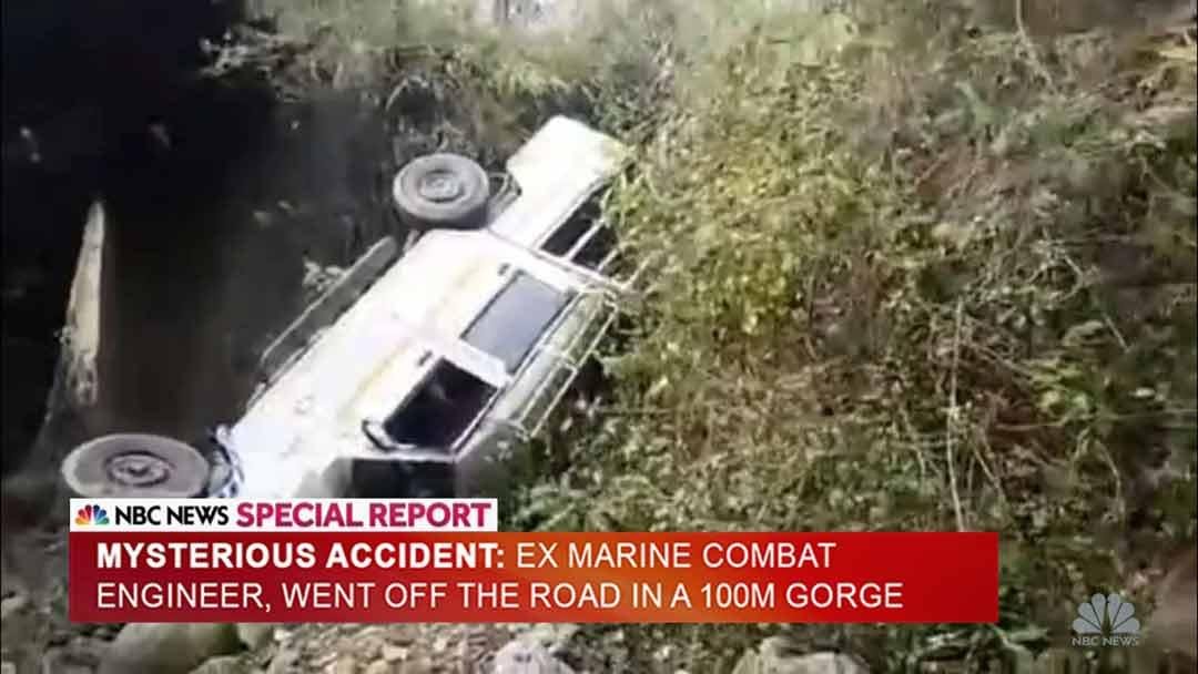 A week later, his Jeep went off the road on a clear day.
